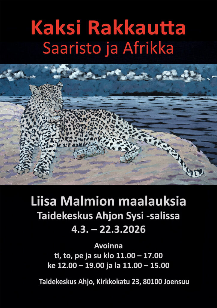 näyttelyt Meilahden kartanossa kesäkuu 2025, på Mejlans Herrgård under juni 2025 Meilahden kartanossa kesäkuu 2025, på Mejlans Herrgård under juni 2025 Söderkullan kirjastossa Sipoon taiteilijoiden kuukauden taiteilijana 1 – 30.4.2025På Söderkulla bibliotek Sibbo konstnärernas månadens konstnär 1 – 30.4.20025 Utställning på Galleri Ronga i Tammerfors 9.11 – 28.11.2024, Exhibition in Tampere, Rongan Isogalleria 9.11. – 28.11.2024 Local Artists ry:n näyttelyssä Kaapelitehdaalla Helsingissä – med på Local Artists ry:s utställning vid Kabelfabriken i Helsingfors 18. – 29.9.2024 Liisa Malmion töitä Korppoon kirjastossa – Liisa Malmios verk i Korpo bibliotek 3.6. – 30.7.2024. Kaapelitehdas 30.11. – 11.12.2022Muutama iso kissani mukana UKJ:n Kaapelitehtaan näyttelyssä Helsingissä. Porvoossa 19.11.2022 Konst & FormSyyskuussa 2022 olivat isot kissani Konst Formissa Sipoon Gumbostrandissa. Sipoon kirjastoKesällä 2022 Sipoon taidelainaamon pikkumaalausten yhteisnäyttelyssä Sipoon kirjstossa. Loviisan KappeliKesällä 2022 UKJ:n yhteisnäyttelyssä Loviisan Kappelisa. Loviisan KappeliKesällä 2021 UKJ:n yhteisnäyttelyssä Loviisan Kappelissa. Local Artist ry:n 10 - vuotis juhlanäyttely 11.12.-22.12.2019Taidettani oli esillä Kaapelitehtaalla Helsingissä Local Artist ry:n 10-vuotis juhlanäyttelyssä. Miten Maa Makaa 12. - 22.12.2019Osallistuin UKJ:n kuratoituun näyttelyyn Kaapelitehtaan Puristamolla Helsingissä 12.12. - 22.12.2019 Taiteilijoiden syyskimara 27.8 – 2.9.2019Osallistuin Näsin Kartanon Gallerian “Taiteilijoiden syyskimaraan" Porvoossa. Hjalmars, KorppooKorppoossa oli esillä sekä Colmio Galleriassa olleita että uusia töitäni. Avajaiset / Vernissage Galleria Colmio 3.5.2019Yksityisnäyttely Galleria Colmiossa Porvoossa 4. - 26.5.2019 Puhdas Itämeri -näyttely Galleria Näsin Kartano 21.3.-15.4.2018 Osallistun Näsin Kartanossa Porvoossa pidettävään Puhdas Itämeri -näyttelyyn. Kesä Gumbostrandissa 2.6.-3.9.2017Alumiinille printatut valokuvani olivat esillä Gumbostrandin Konst & Formin yhteisnäyttelyssä. Klassisten Veneiden Galleria Laivasillalla 1.8. – 28.8. Näyttely Klassisten Veneiden Galleriassa Laivasillalla Loviisassa 1.8. – 28.8. Avoinna päivittäin noin 10-18.